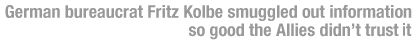 Fritz Kolbe hated his job. But what could one man do? Damage, he decided. Serious damage.