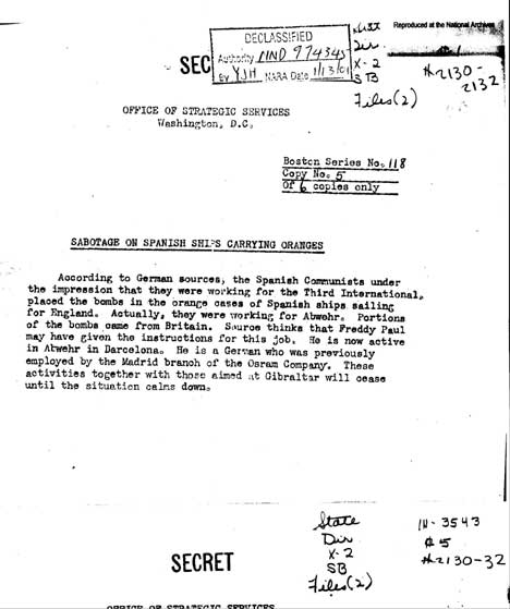 These are samples of the 1,600 dispatches smuggled out of Germany by Fritz Kolbe during World War II. Each is a large image that will take a few moments to download.